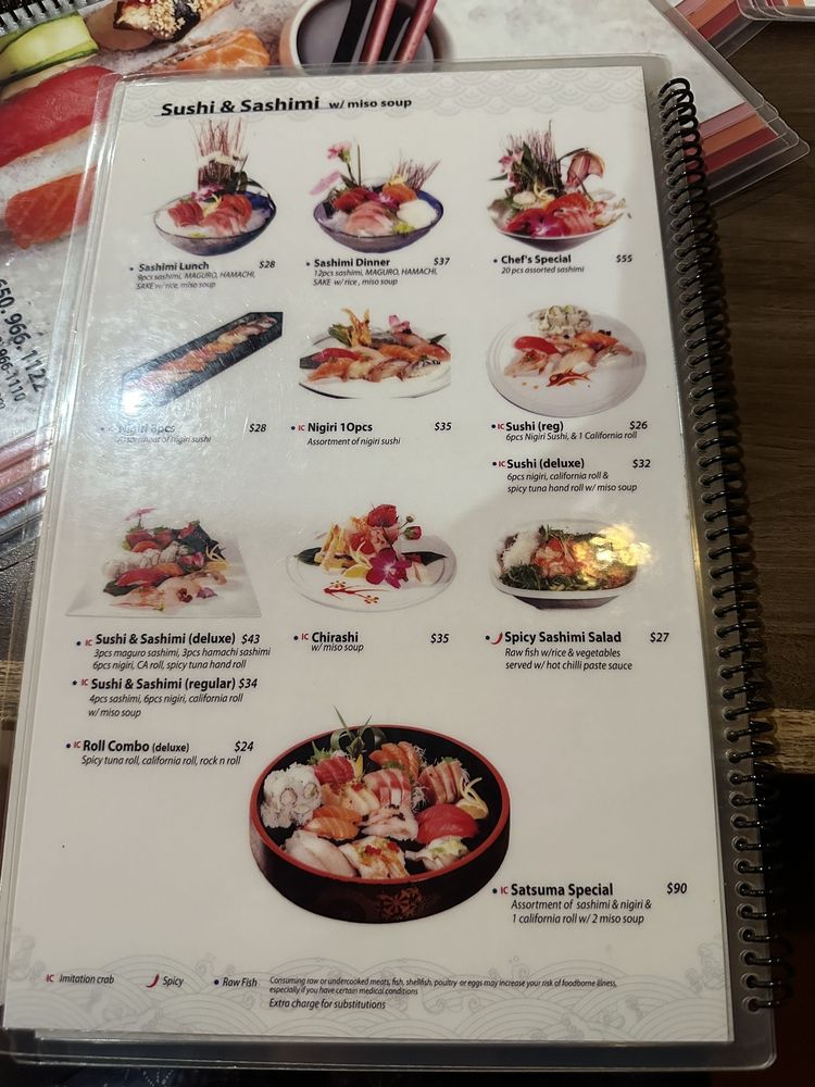 Introducing the menu at Satsuma Sushi, a popular Asian-owned and women-owned restaurant in Mountain View, CA. Known for its fresh fish and attentive service, Satsuma Sushi offers a variety of options including appetizers, sushi rolls, udon, and rice bowls. Customers rave about the sashimi salad and sushi nigiri, while enjoying the affordable pricing and lunch specials. The Okayo Don, a rice bowl filled with veggies, egg, chicken, and a sweet sauce, is a standout dish. With a casual atmosphere, wheelchair accessibility, and outdoor seating, Satsuma Sushi caters to a diverse range of diners. Whether you're looking for a quick lunch or a group dinner, Satsuma Sushi provides a welcoming environment with delicious Japanese cuisine.